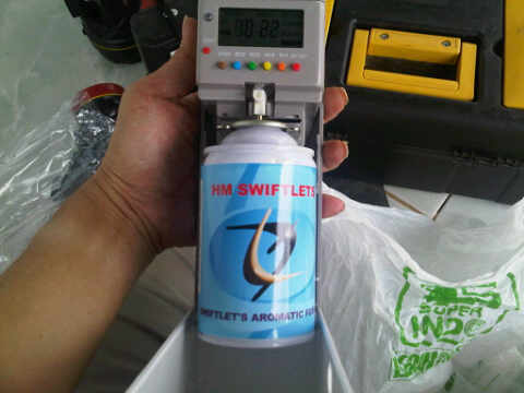 Kemasan aerosol Swiftlet’s Aromatic Fusion ( Aroma Pemikat Walet – H3NsaTu ) memudahkan anda untuk mengaplikasikannya di Rumah Burung Walet anda. Cepat dan Praktis.